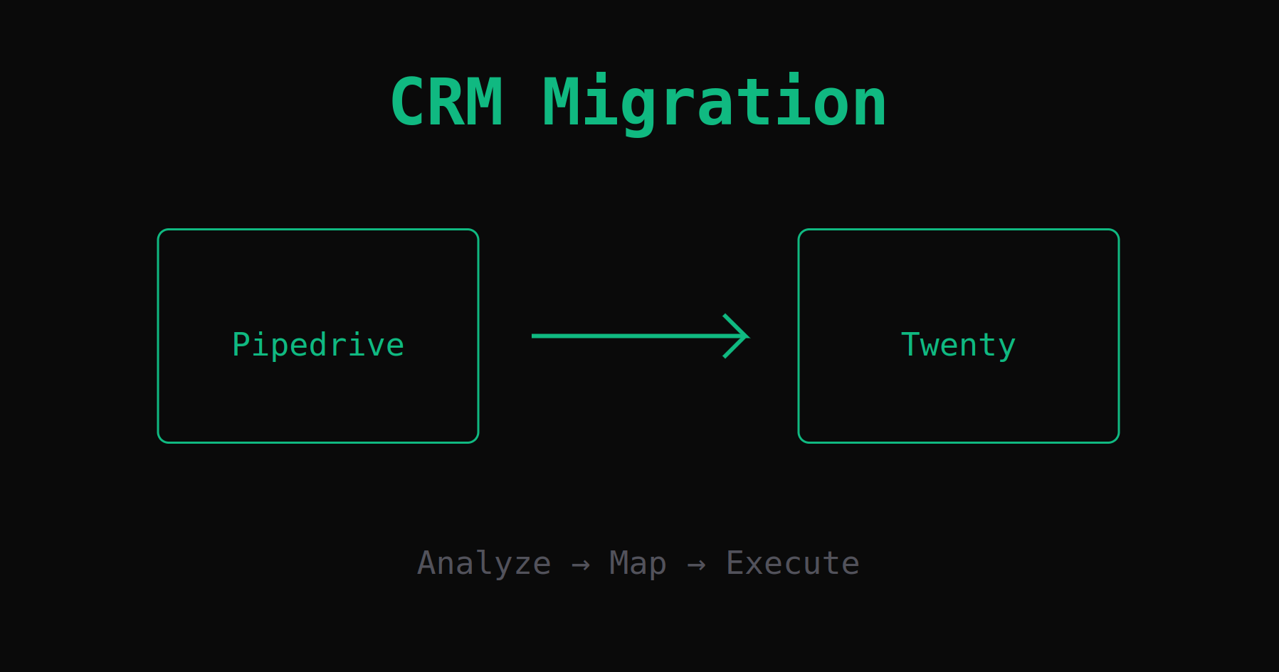 Watch SDRbot migrate an entire organization from Pipedrive to Twenty CRM autonomously. No CSV hell, no expensive consultants.